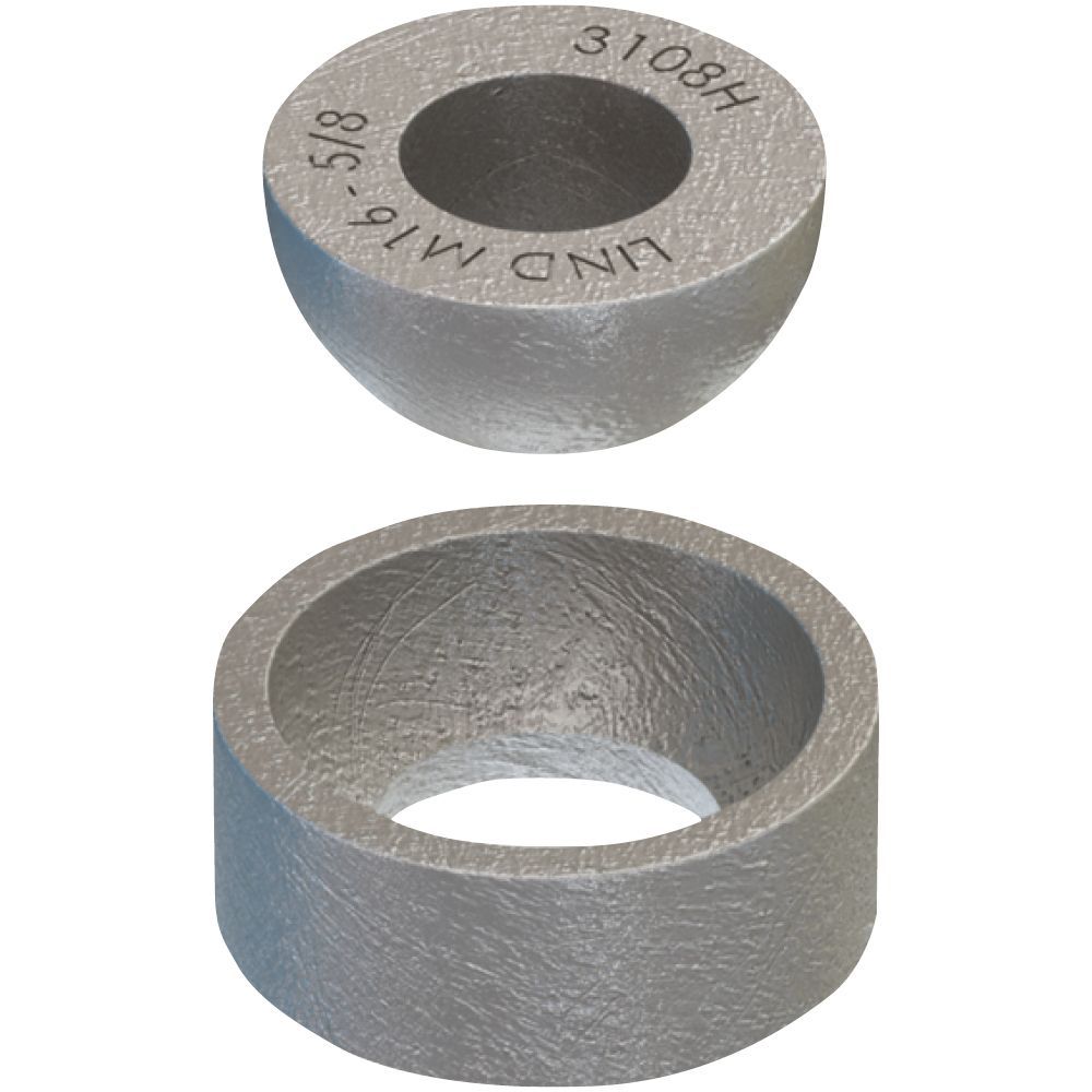 Hemispherical washer and cup for vertical suspension of building services from structural or secondary beams that are inclined.