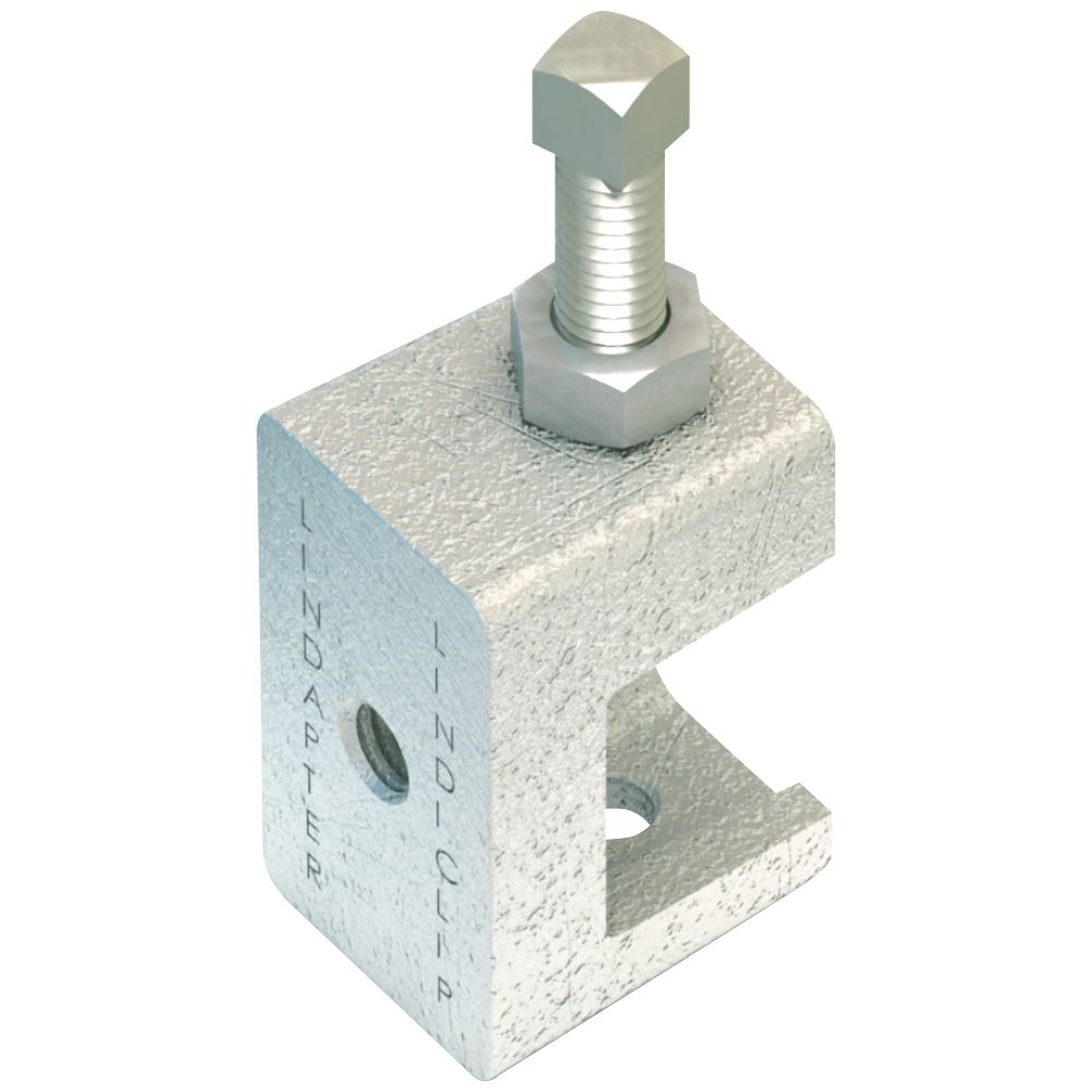 An easy to install beam flange clamp, with moderate loading capacity, for suspending building services from structural or secondary beams.