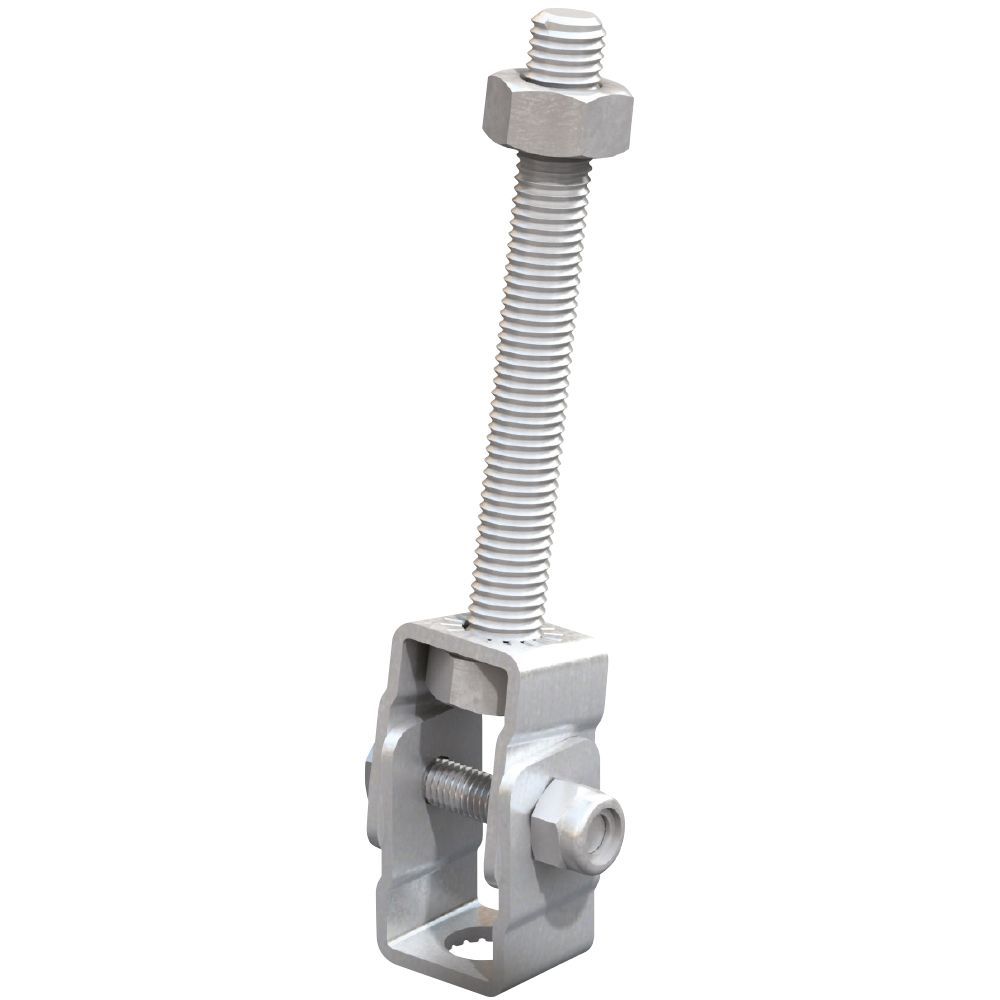 Easy to install and adjustable connections for suspending building services from structural or secondary beams, including HVAC equipment, pipework, fire protection, sprinkler systems, suspended ceilings, and electrical equipment.